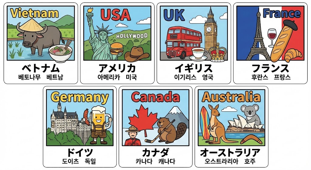 | アメリカ | 아메리카 | 미국 |